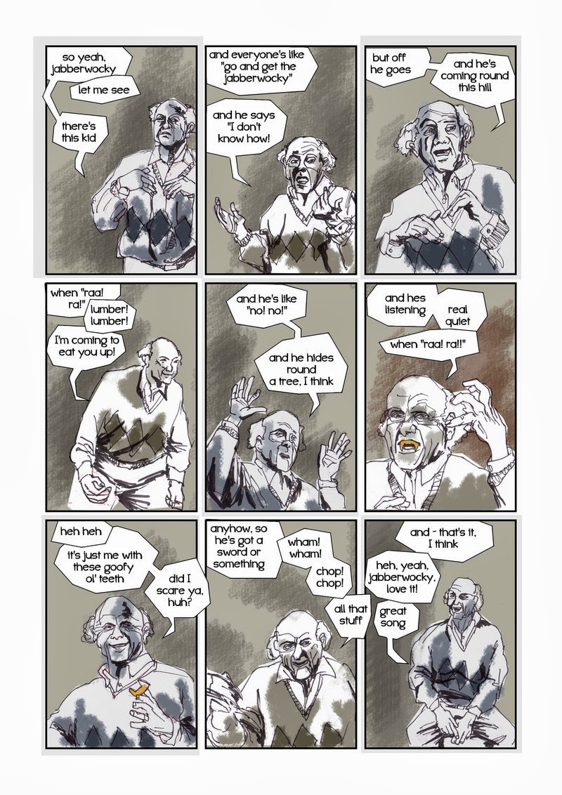 I’ve taken Lewis Carroll’s nonsense poem “Jabberwocky”, which he composed largely of imaginary words – arguably in an attempt to keep the reader guessing as to what he was on about, and force them to engage in their own interpretation.