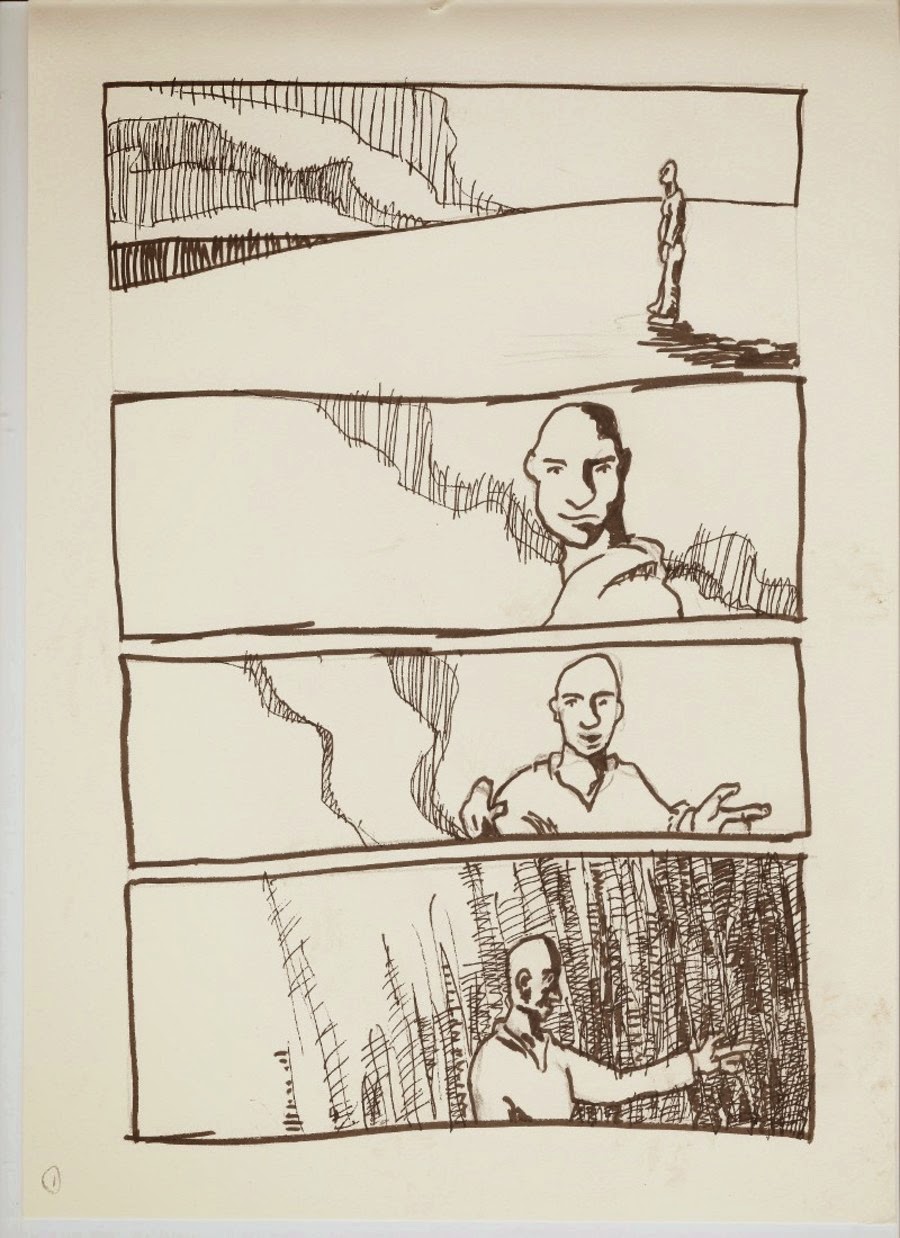 A story that I started sketching out a while back, looking for a very simple, quick style – recently revisited as part of my ongoing thinking about how to get stuff done in time (of which the 24-hour comic is an extreme form)