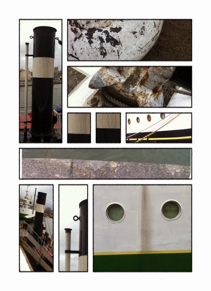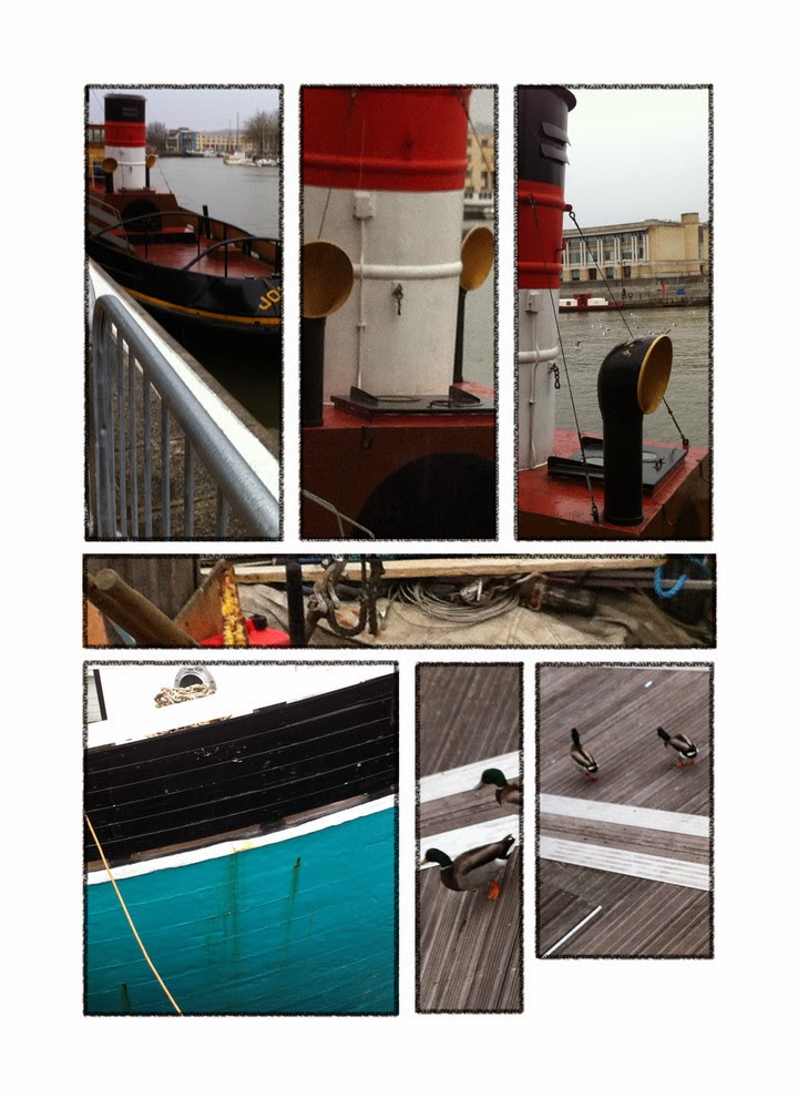 Some nice photos I took of Bristol Docks Museum (a.k.a. “M-Shed”) a while back, but the key question I’m tying to answer here is how can page & panel layout communicate a sense of place? A jumbled, textured, busy place, with a lot going on at once, and everything bobbing up and down.