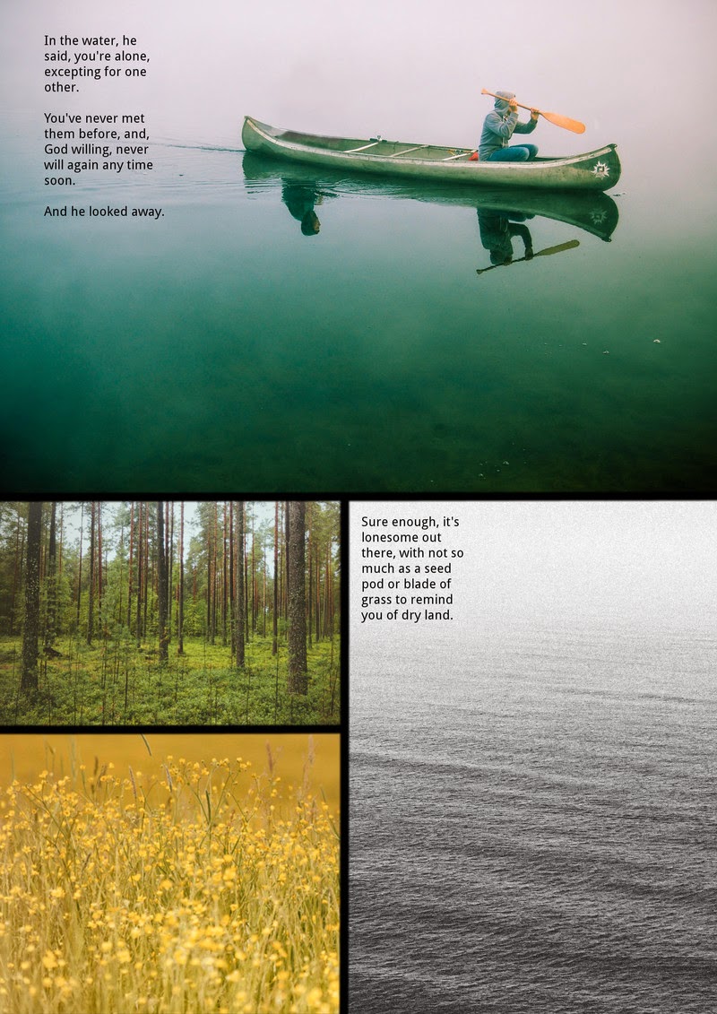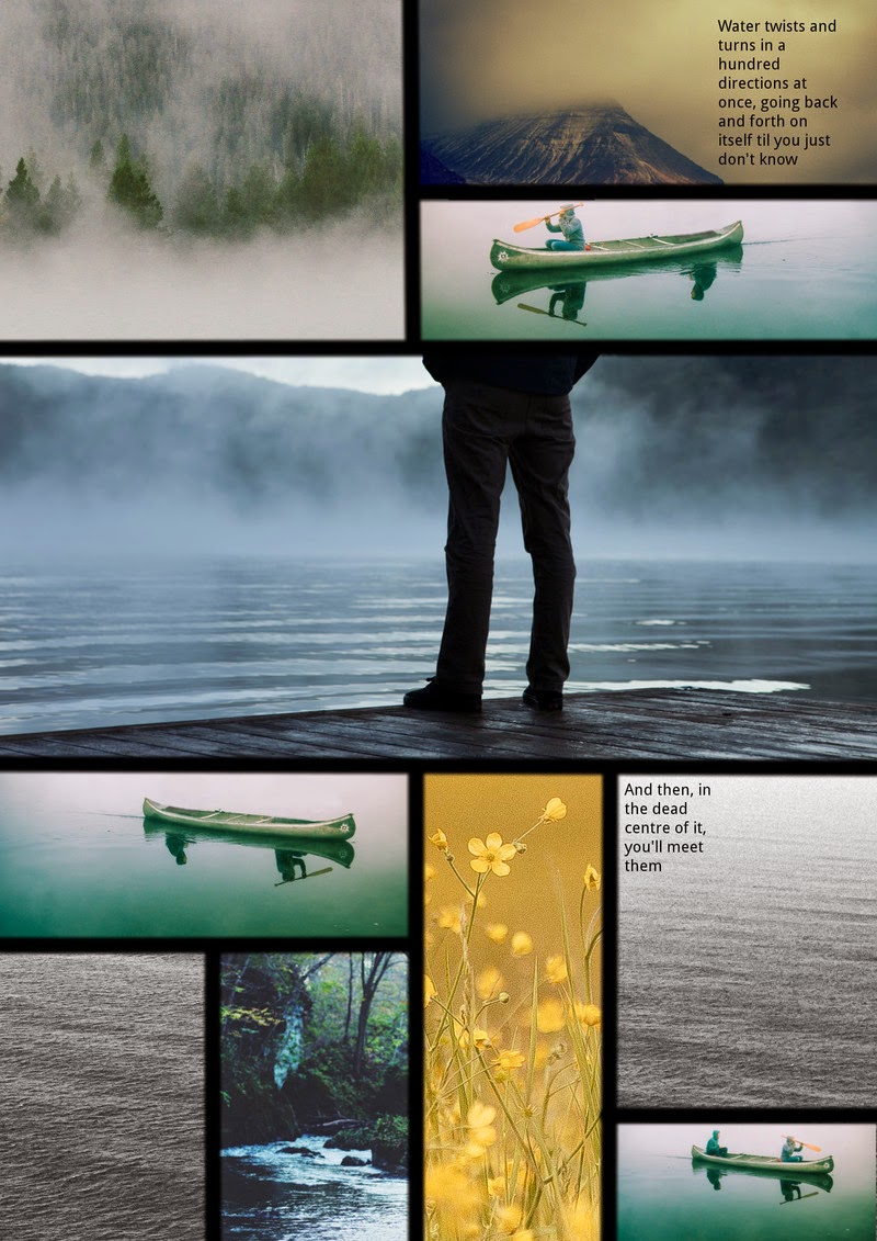 The canoe was the obvious narrative starting point here, and I “cheated” and did a bit of gimp-ing to remove the boys one by one. Leaving in the reflections started out as an accident, but it was a good one that serves the story well, I think!