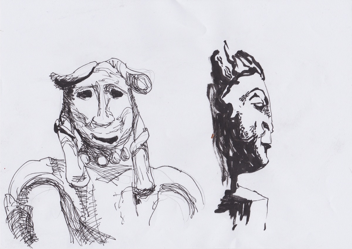 July 21, 2015December 29, 2015 Masks Pen sketches of a couple of items from a recent trip round Oxford’s museums (LHS from Pitt Rivers, RHS from Ashmolean, if I remember right) I’m doing so much digital stuff these days, nice to pick up a pen for a change! Share this: Click to share on X (Opens in new window) X Click to share on Facebook (Opens in new window) Facebook Like Loading... Related