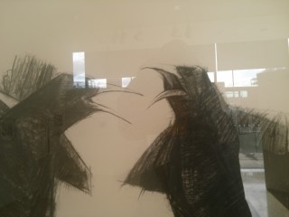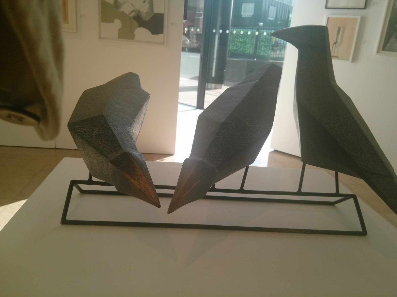 The crow on the angry guy’s hand in the top panel came from a sculpture of some choughs by Terence Coventry in the Pangolin Editions gallery downstairs (thanks to Pangolin for letting me take the photos!) Love the way the blackened metal becomes more polished at their beaks.