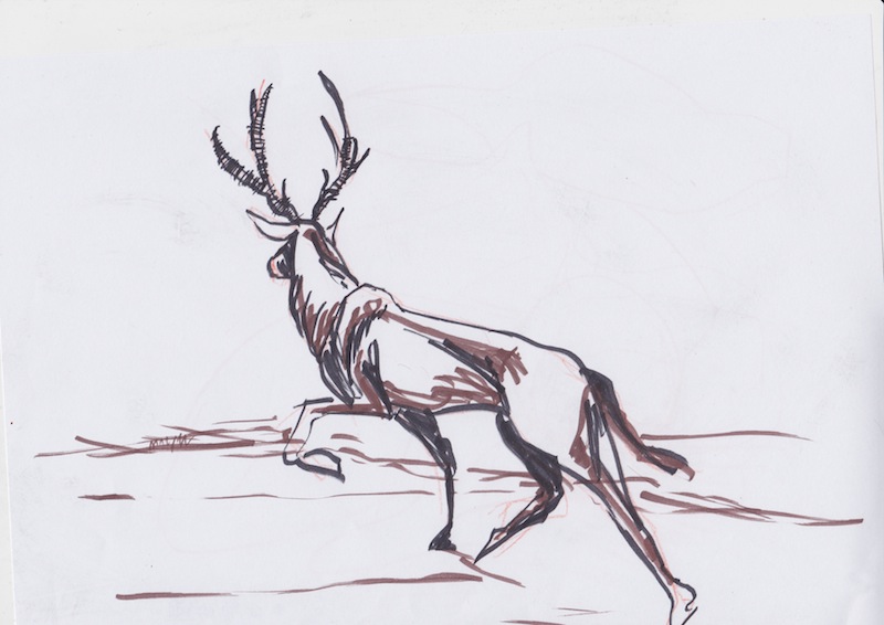 Another quick sketch based on Ken Hultgren’s “The Art of Animal Drawing” (he being a lead artist/animator for Disney’s Bambi back in the day). Done in a quick drawing session with my kids over the weekend.