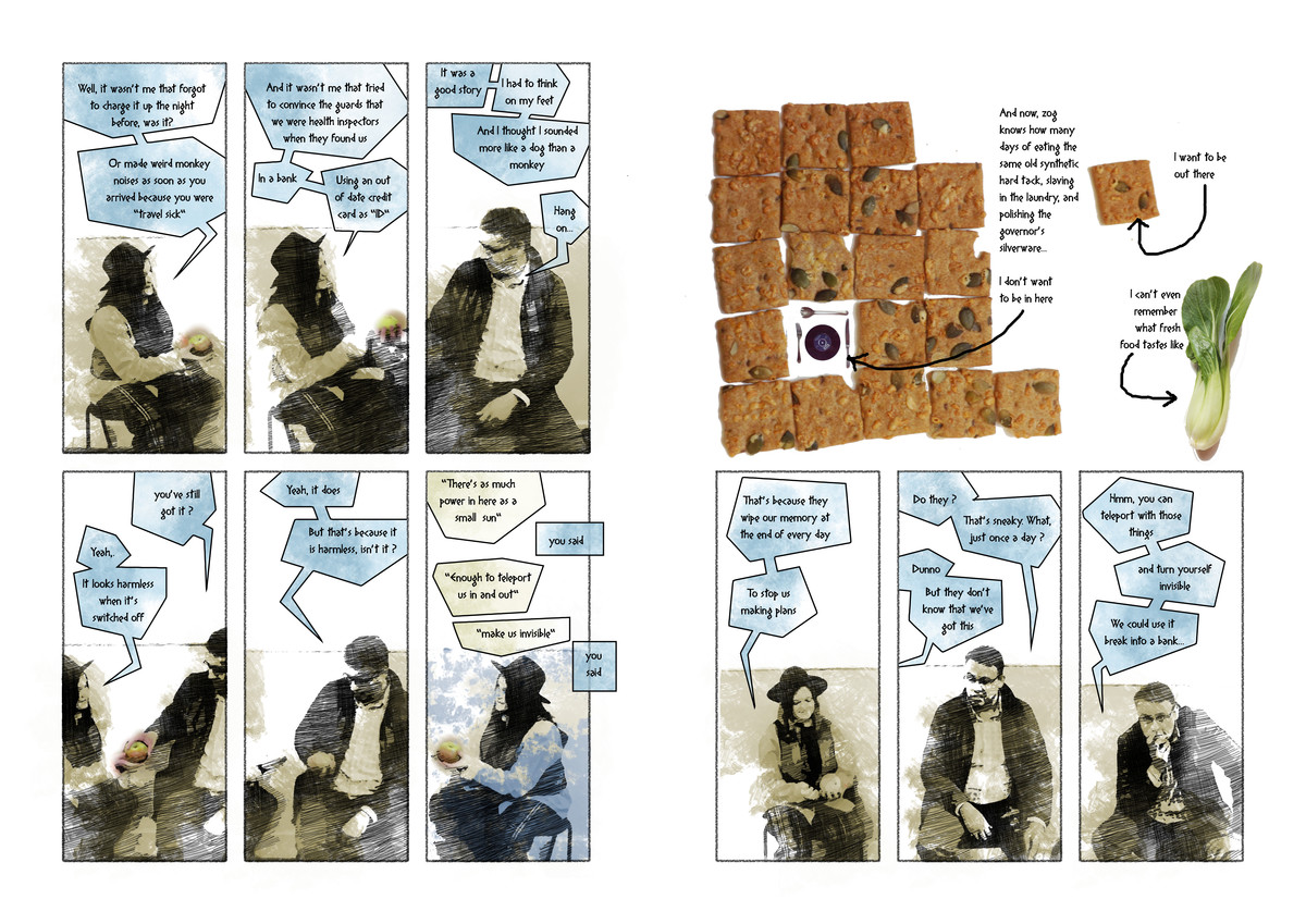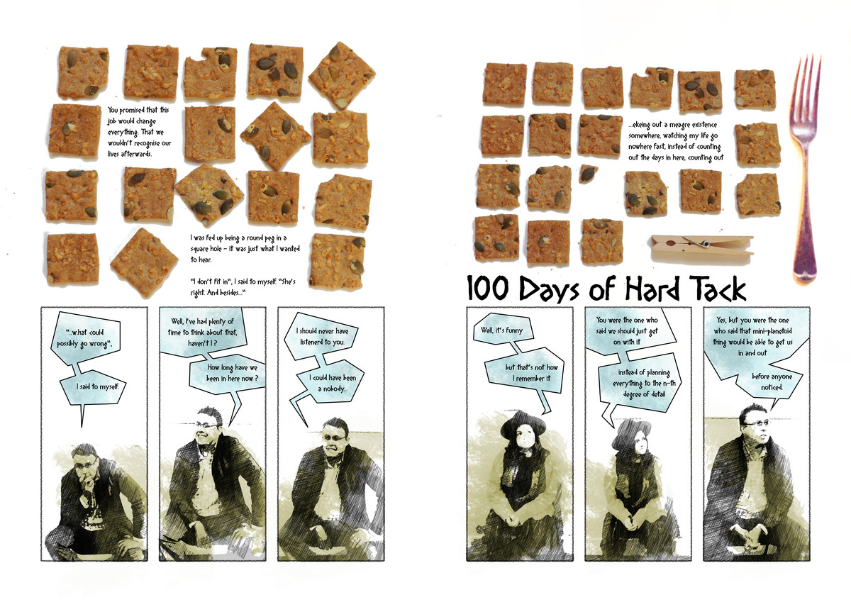 An early attempt at exercising my improv toolkit to create a short story from scratch, in an hour. (In the end, it took an hour and a half.) The writing was the hard bit, I feel it could do with more editing, and ended up a bit “Future-Shock” (the short tales with a twist that used to feature in 2000AD), but it was a good way to use up some stale biscuits 🙂 And fun to do.