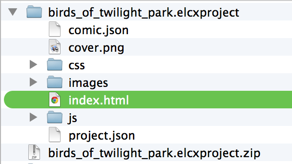 If there is no “index.html” file in the folder, Fenix will show a file listing (see above), so you can click down to the electricomic, at which point, you ought to see the “Tap to Start” message. (You’re on a proper computer, so “tap” means “click”). Happy reading!