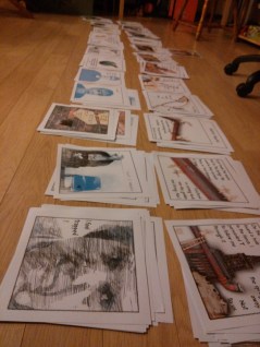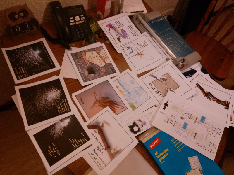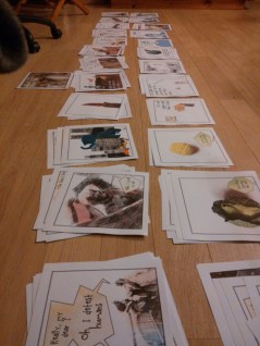 Last couple of days I hit that scary / exciting stage in the project where everything came off the computer, and got printed out. Finally giving me some notion of how the installation is going to be. Each square is 20cm roughly, there are 170 of them, laminated and mounted double-sided to be readable from inside or outside.