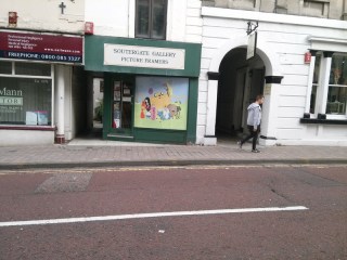 | This is not part of the Window Trail, just standard window dec at an estate agents, but I’d like to do a comic that looks like this! (There’s some cut-out paper style stuff at my exhibition at YWCA, getting into that look.) |
