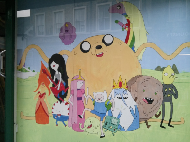 | This is not part of the Window Trail, just standard window dec at an estate agents, but I’d like to do a comic that looks like this! (There’s some cut-out paper style stuff at my exhibition at YWCA, getting into that look.) |
