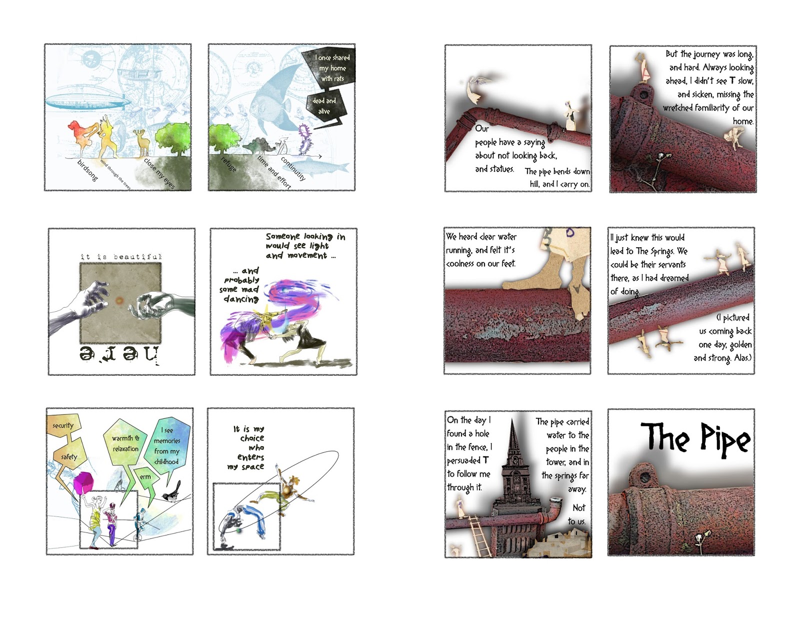 My exhibition has been put together as a book (disclaimer: I did it, it didn’t just happen), containing re-flowed versions of the strips on both sides of the window, plus a new illustrated two-page story. It’s available to purchase online, and on sale in the Comics Clock Tower (aka Town Hall), and from the Foyer Cafe, where the exhibition runs until Sunday.