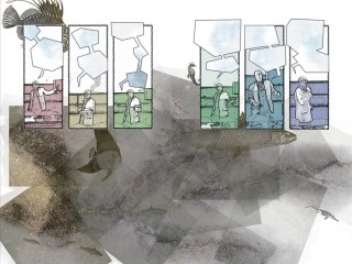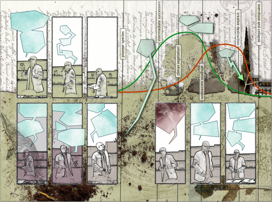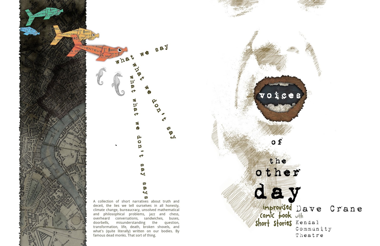 I made a mistake with the first run of my book “Voices of the Other Day”, which I was selling at Lakes International Comic Art Festival, and accidentally reprinted the cover inside. This had the effect of offsetting and breaking up a lot of the double-page spreads – something that I used a lot in that book, in the stories “Footnote in History”, “Lists of Unsolved Problems” and “What can we tell the trees?”.