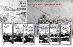 Anyway, here’s a first draft of a comic based on Conrad’s work, also using footage from my Improv sessions at LICAF 2015. Followed by my explanation, by email, of what I was trying to do. (In my books, I tend to add prefaces to the strips, I think the story behind the story can often help.)