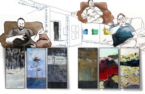I met the artist Conrad Clarke a couple of months ago, while he was setting up an exhibition in Cheltenham, where I was working at the time, and taking a lunchtime stroll. We got talking about his paintings, and a little about my comics work. Afterwards, I realised how much his non-narrative paintings were suggesting narratives to me, and I decided that I’d like to try exploring the way that paintings and other static/non-narrative art suggests stories. I’ve done some similar things a couple of years back, using famous, dead/out-of-copyright artists. The key to success then, and now, I think, is not to tell the obvious story.